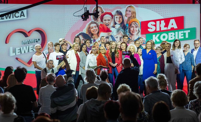 Dzisiaj serce Polski bije tutaj na Rondzie Praw Kobiet w Warszawie, ponieważ to kobiety wygrają te wybory! Dziewczyny, jesteście ...